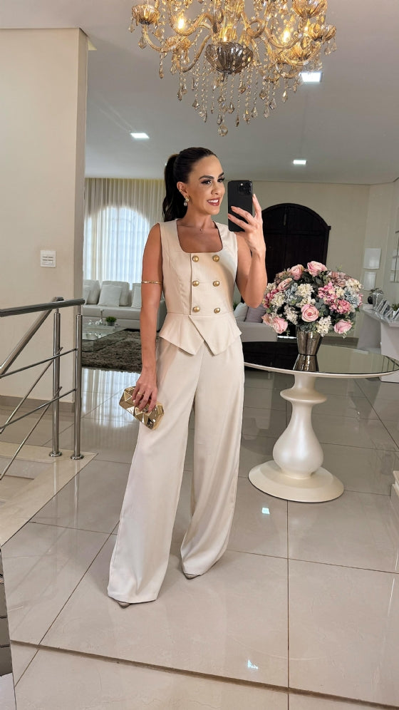 O Macacão Emanuele é a definição de sofisticação e charme. Confeccionado em tecido de alfaiataria, apresenta modelagem pantalona e um elegante decote quadrado. O fechamento em zíper e os detalhes de botões dourados adicionam um toque especial, tornando essa peça um verdadeiro sonho para compor looks incríveis.