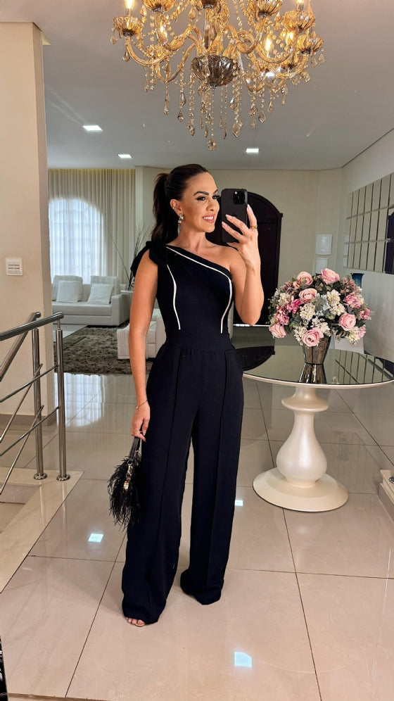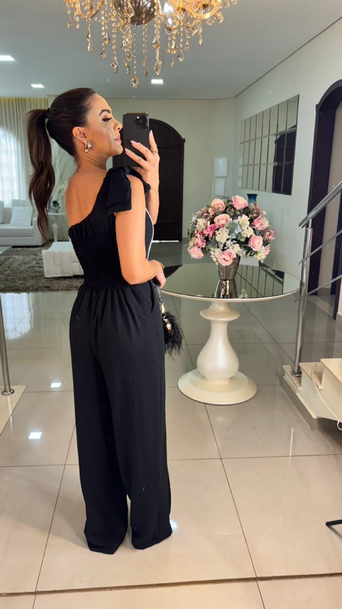 O Macacão Margareth é a definição de sofisticação e praticidade. Com design de um ombro só e lastex na parte de trás, ele garante ajuste perfeito e conforto. Confeccionado em tecido Duna que não amassa, sua modelagem pantalona proporciona um caimento impecável. Um macacão dos sonhos para arrasar em qualquer ocasião.