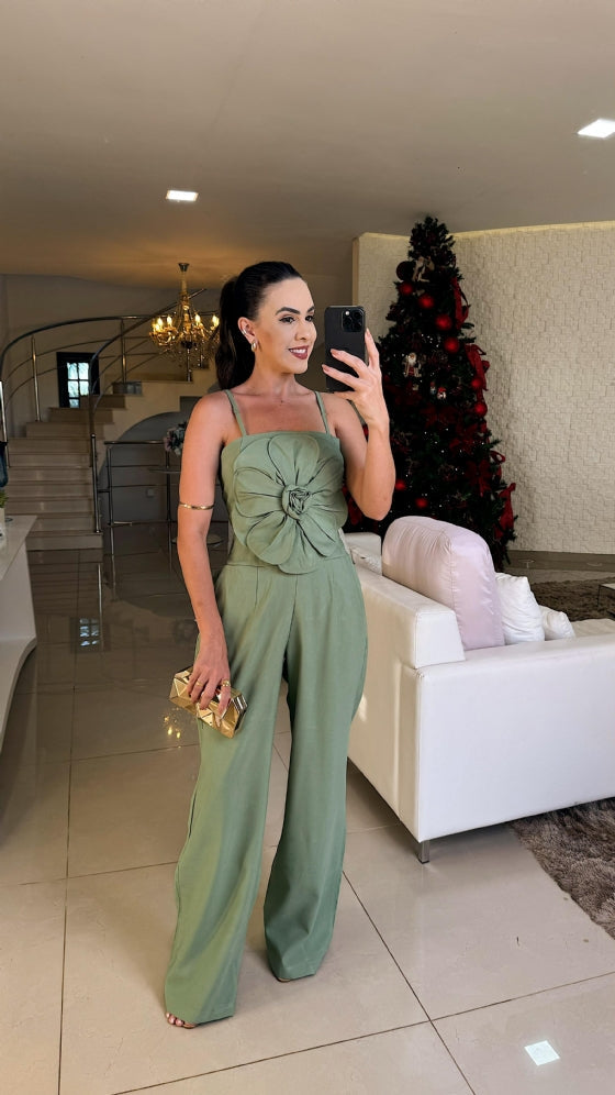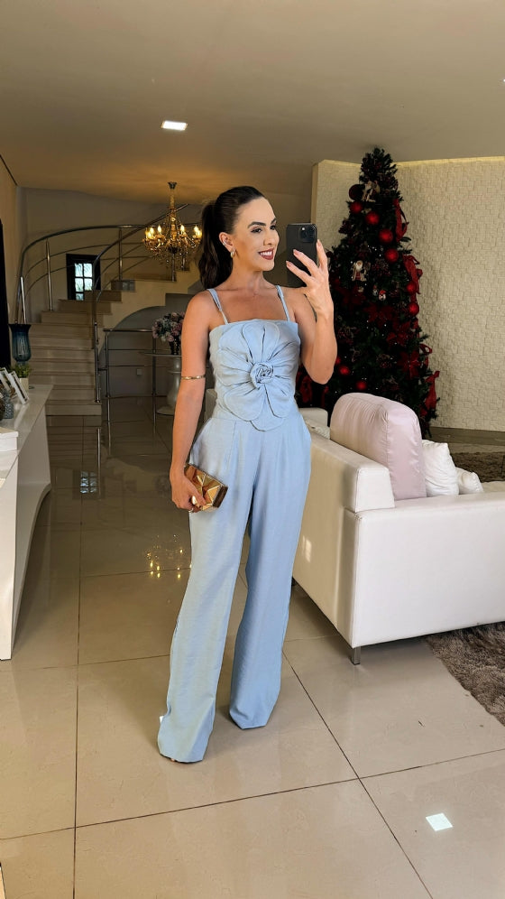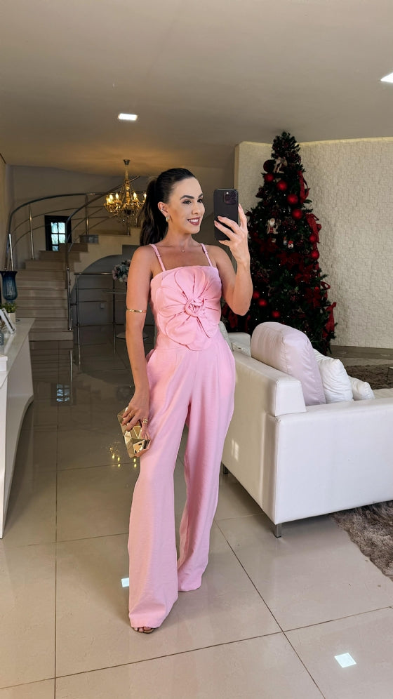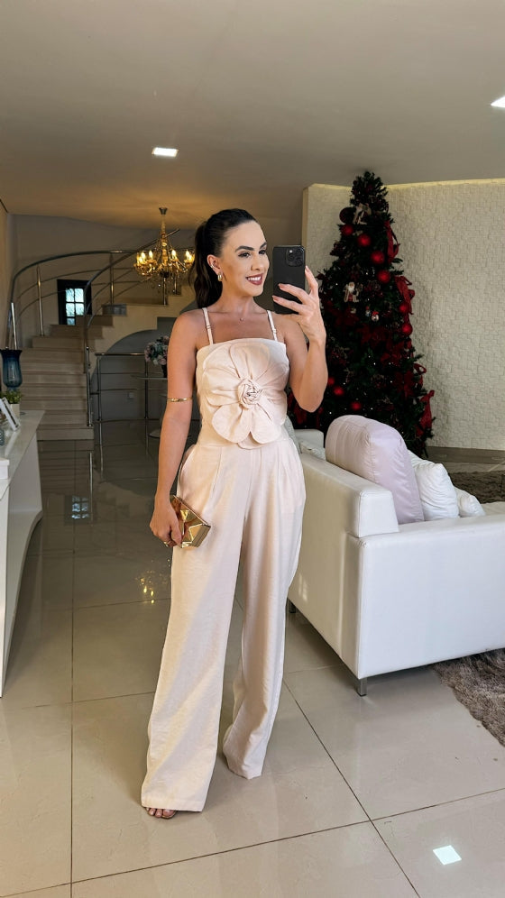 O Macacão Rúbia é puro charme e sofisticação. Com um delicado detalhe de flor, ele combina elegância com modernidade. A calça modelo pantalona garante um caimento impecável, enquanto o lastex oferece conforto e ajuste perfeito. Confeccionado em tecido sensorial, é leve e ideal para quem busca um look dos sonhos.